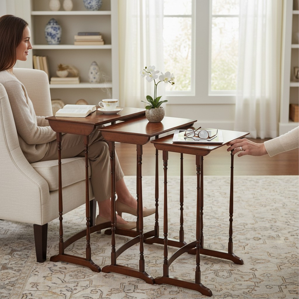 A stylish and practical set of nesting tables, combining elegant design, fine craftsmanship, and everyday usability.