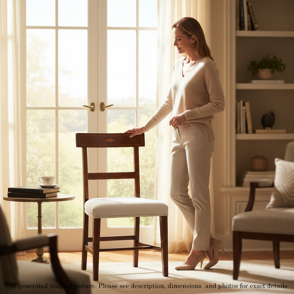 A rare and elegant set, these chairs combine fine craftsmanship with timeless charm; they're perfect for both formal and relaxed dining settings.