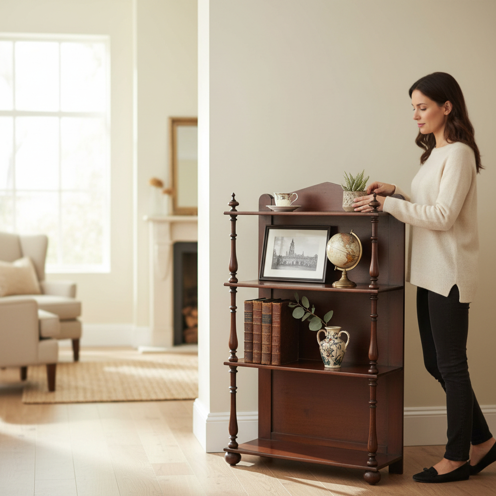 A charming and versatile Victorian shelving unit, ideal for displaying books, collectibles, or decorative items in any room.