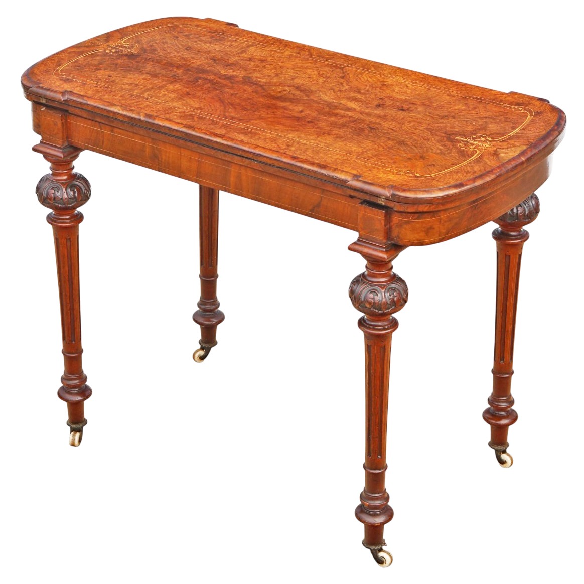 Antique c.1880 Victorian Mahogany & Burr Walnut Card Table – Fine Quality 19th Century Games Table