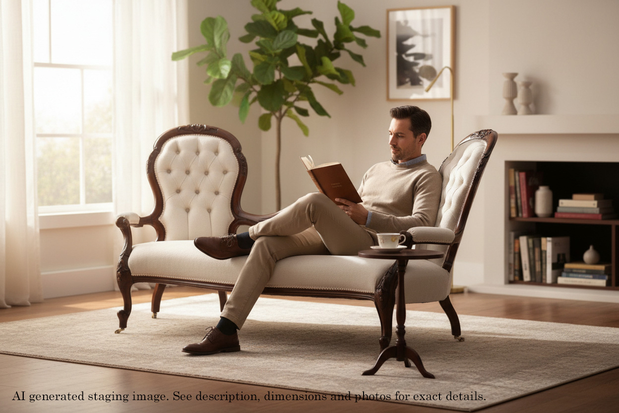 Antique Victorian c.1860 Walnut Chaise Longue / Conversation Sofa – Elegant 19th Century Seating